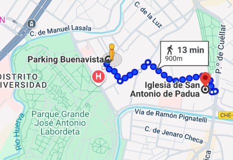 Si vas en coche, se puede aparcar a 13 minutos. Se llama Parking Buenavista. Es una zona complicada de aparcar en la calle.